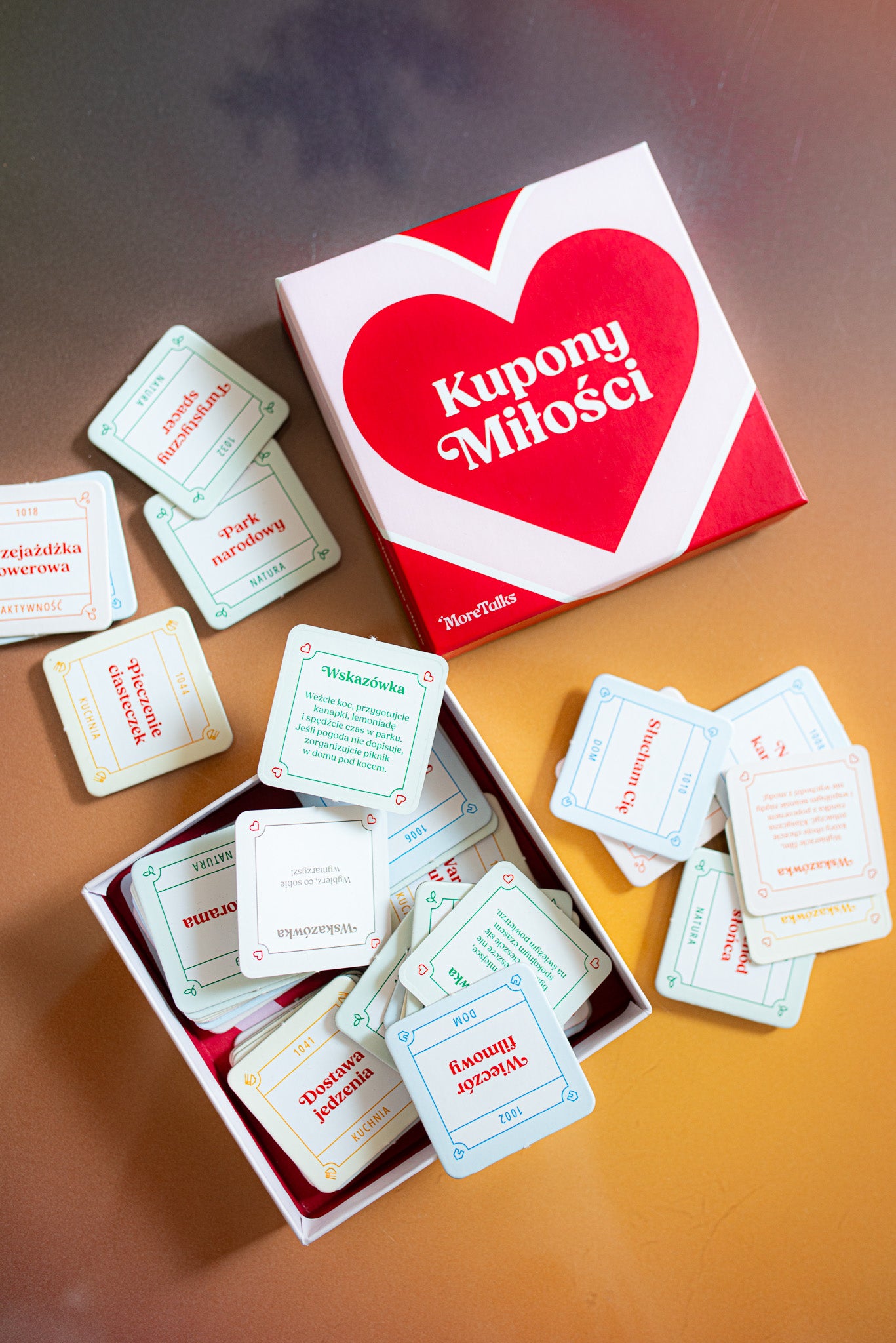 - Kupony Miłości — 48 pomysłów na randki, które pokazują, że bliskość może być kreatywna, spontaniczna i pełna radości. Do wyboru wersja Klasyczna lub Zmysłowa.